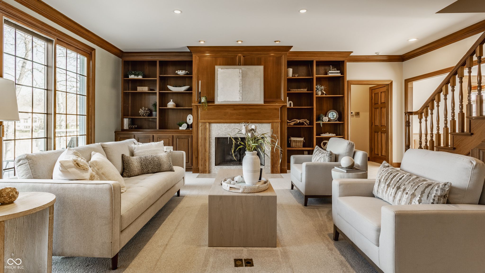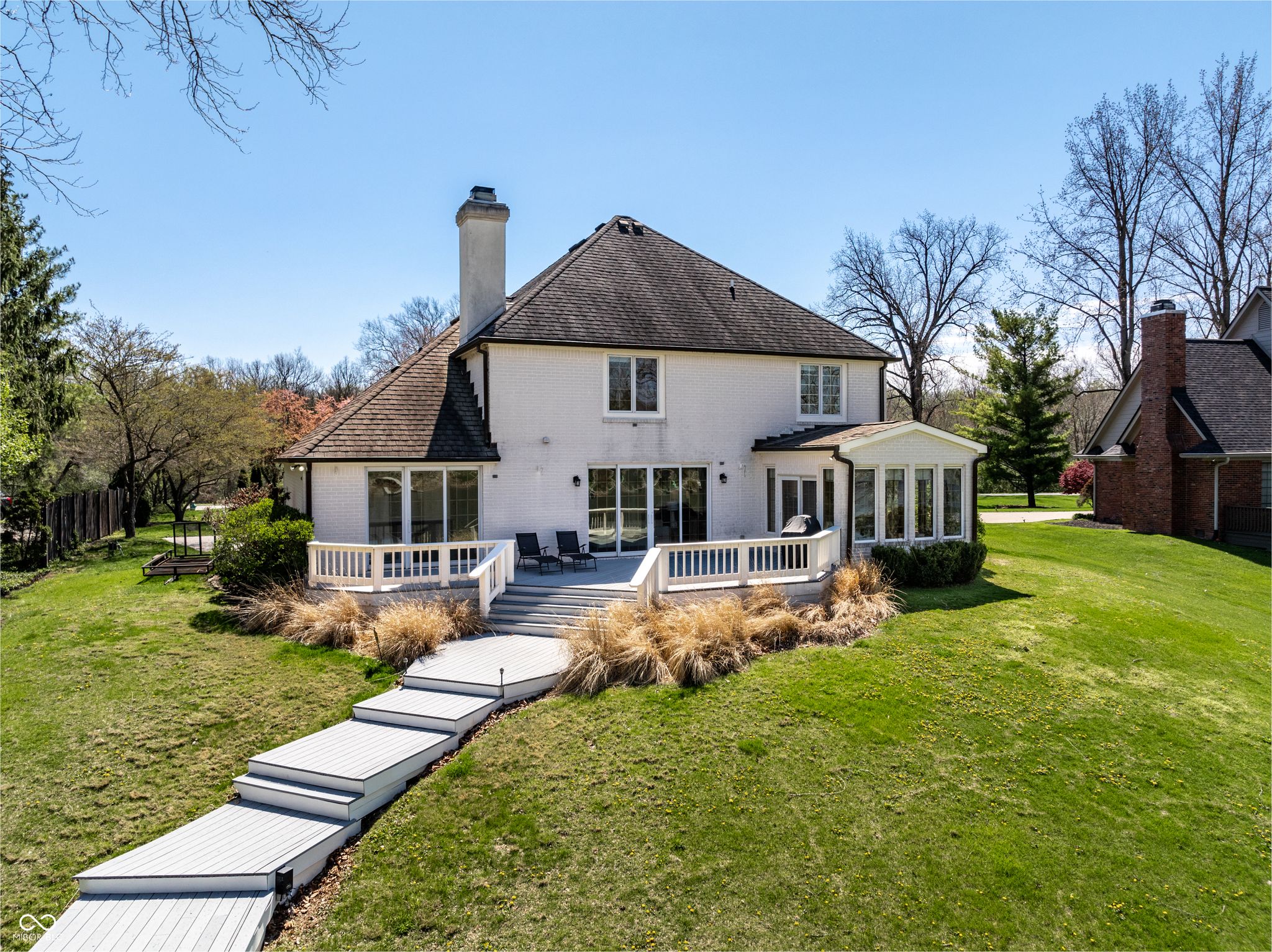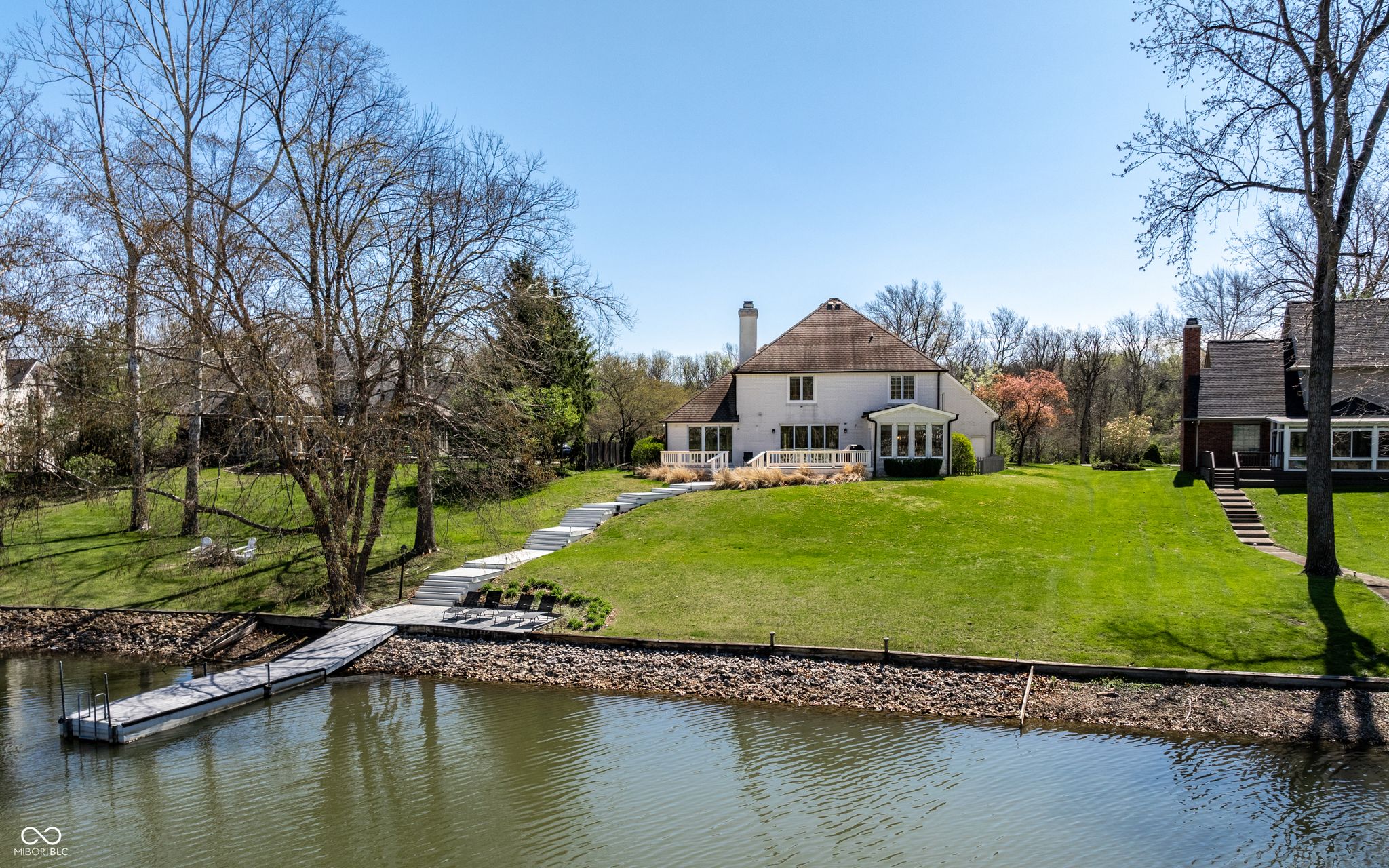 Experience the lakefront lifestyle you've been dreaming of, with stunning waterfront views. Nestled on a prime lot on Lake Kesslerwood in Indianapolis, this beautifully refreshed home offers more than 4,500 sq ft, 4 bedrooms, 4.5 baths, and the kind of everyday setting that makes coming home feel like a getaway. From the moment you arrive, the winding driveway, generous parking, basketball area, and spacious 3-car garage create an inviting first impression. Inside, the home has been thoughtfully updated with fresh paint, updated lighting in multiple rooms, new carpet in family room, dining room, and main level bedroom, along with addl improvements in the primary bathroom and basement. Designed for both comfortable living and entertaining, the gourmet kitchen features a built-in oven, built-in cooktop, stainless steel appliances and a separate prep sink in the island. It flows beautifully into the spectacular all-season sunroom, where lake views create a peaceful retreat in every season. The den/study offers rich hardwood floors & wood paneled walls, stunning built-in cabinetry, making it the perfect space for working from home. Lots of wood detail around the home including crown molding and gorgeous bookshelves flanking the family room fireplace. Upstairs, the bonus room provides flexible space for recreation, addl bedroom/ workspace, with the added convenience of a private staircase from garage. Fully finished basement with bar area, full bath, sauna, living room and rec room. Outside is where this home truly shines. Spend cool spring evenings on the back deck overlooking the spacious backyard and water beyond, then stroll down to your private dock and lakeside seating area to enjoy morning coffee or the sunset views. This is more than a home. It is a lifestyle. Move-in ready and full of charm, this waterfront gem is one you won't want to miss.